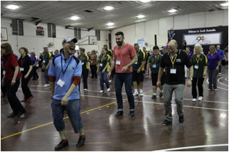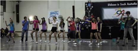 Precision (or modern) clogging was developed around World War II, and is danced to a variety of music, usually recorded, including rock and country & western. Precision cloggers wear shoes with jingle taps. The emphasis of precision clogging is on everyone clogging the same step at the same time. This is the form of clogging danced most often in Australia.